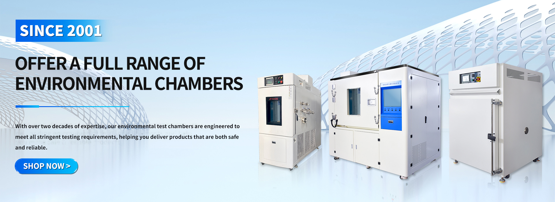 ATMARS INDUSTRY CO., LIMITED is a high-end simulation environmental testing equipment manufacturer integrating R&D, design and production. As a technology-based enterprise, ATMARS has always been talented and service-oriented. Since the establishment of the company, it has introduced a group of high-end talents in the simulation environment test equipment industry, and has accumulated rich design and project experience.At present, the main products are constant temperature and humidity test chamber, walk-in constant temperature and humidity test chamber, high and low temperature test chamber, two-zone thermal shock test chamber, three-zone thermal shock test chamber, fast change rate test chamber, high temperature oven, Environmental testing equipment such as aging test chamber, high and low temperature and low pressure test chamber.