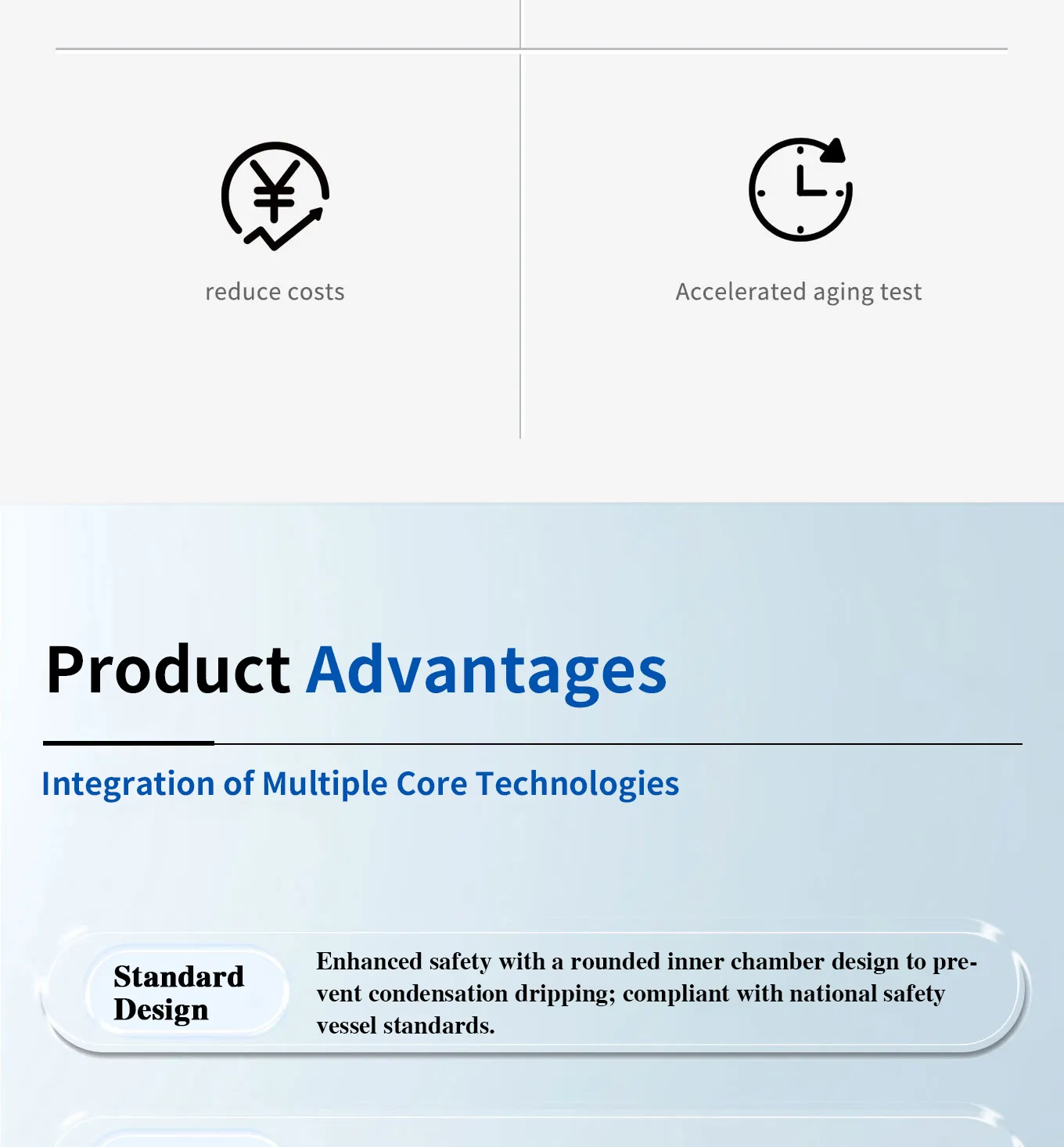 As a cutting-edge reliability testing solution, the HALT High-Pressure Accelerated Life Test Chamber is engineered to simulate extreme environmental conditions in a controlled lab setting. It accelerates the exposure of products to high pressure, temperature cycling, vibration, and other stress factors, enabling manufacturers to quickly identify potential design flaws, material weaknesses, and performance limits of components or finished products. Compared with conventional life tests, HALT chambers drastically shorten test cycles, reduce R&D costs, and help enterprises launch more durable and reliable products to the market with confidence.