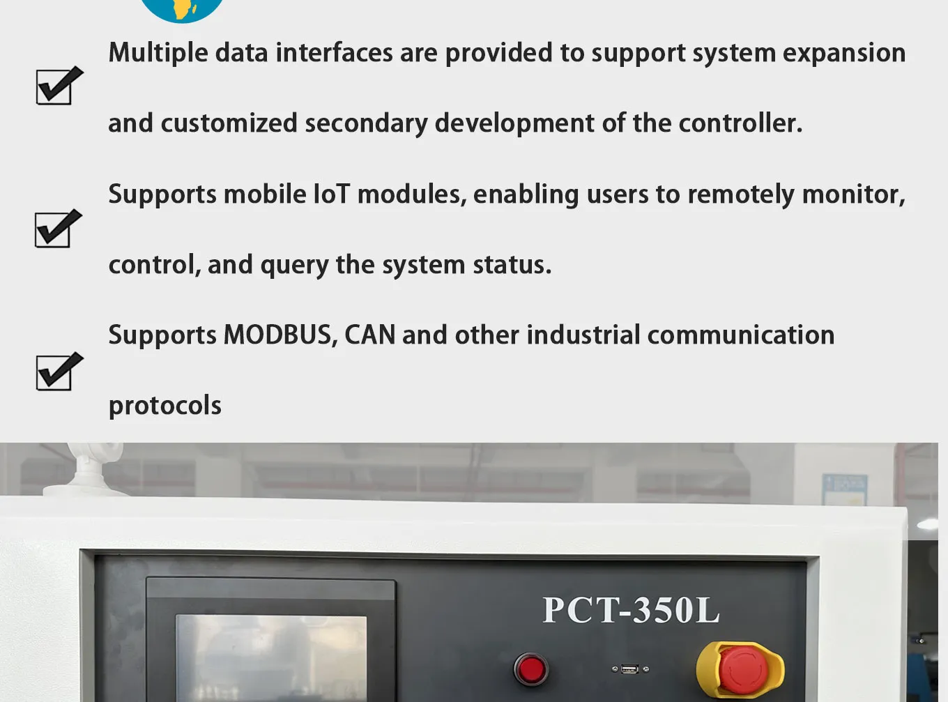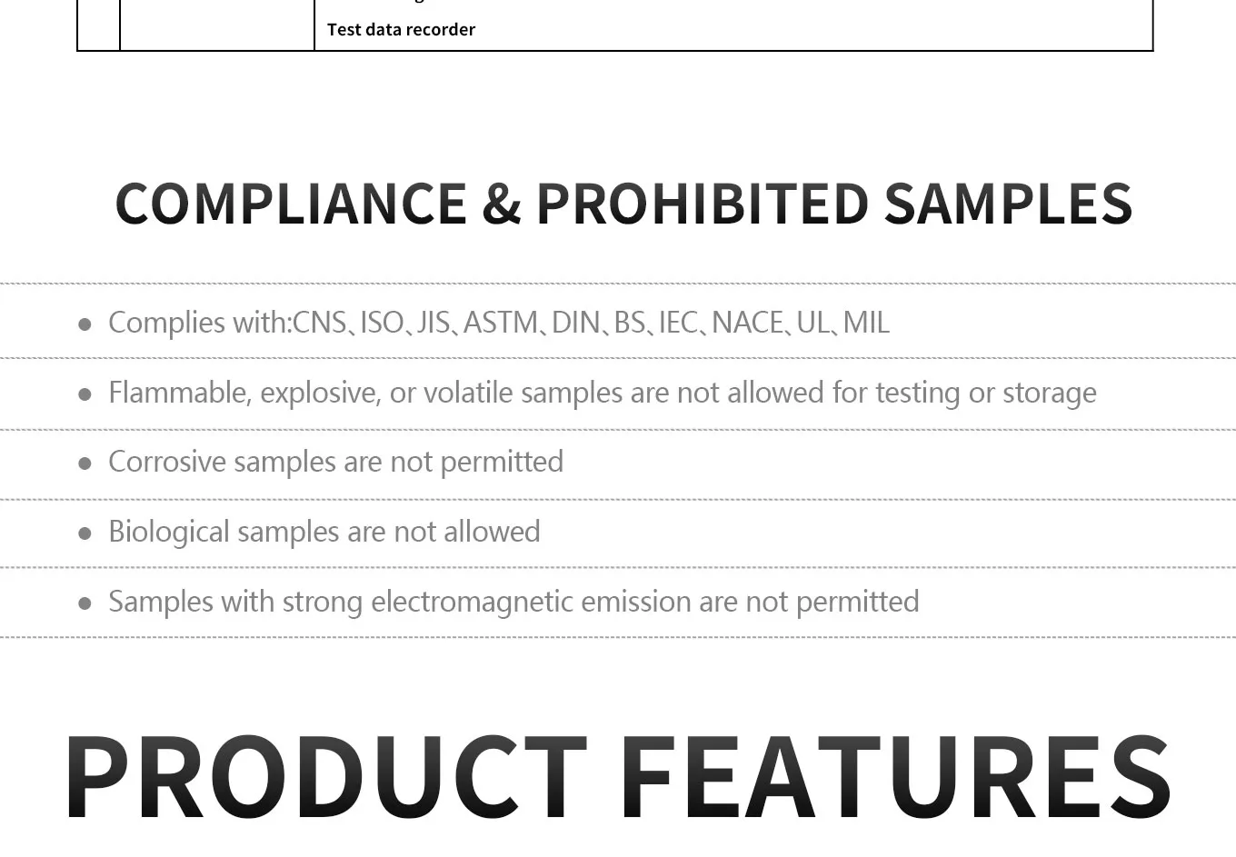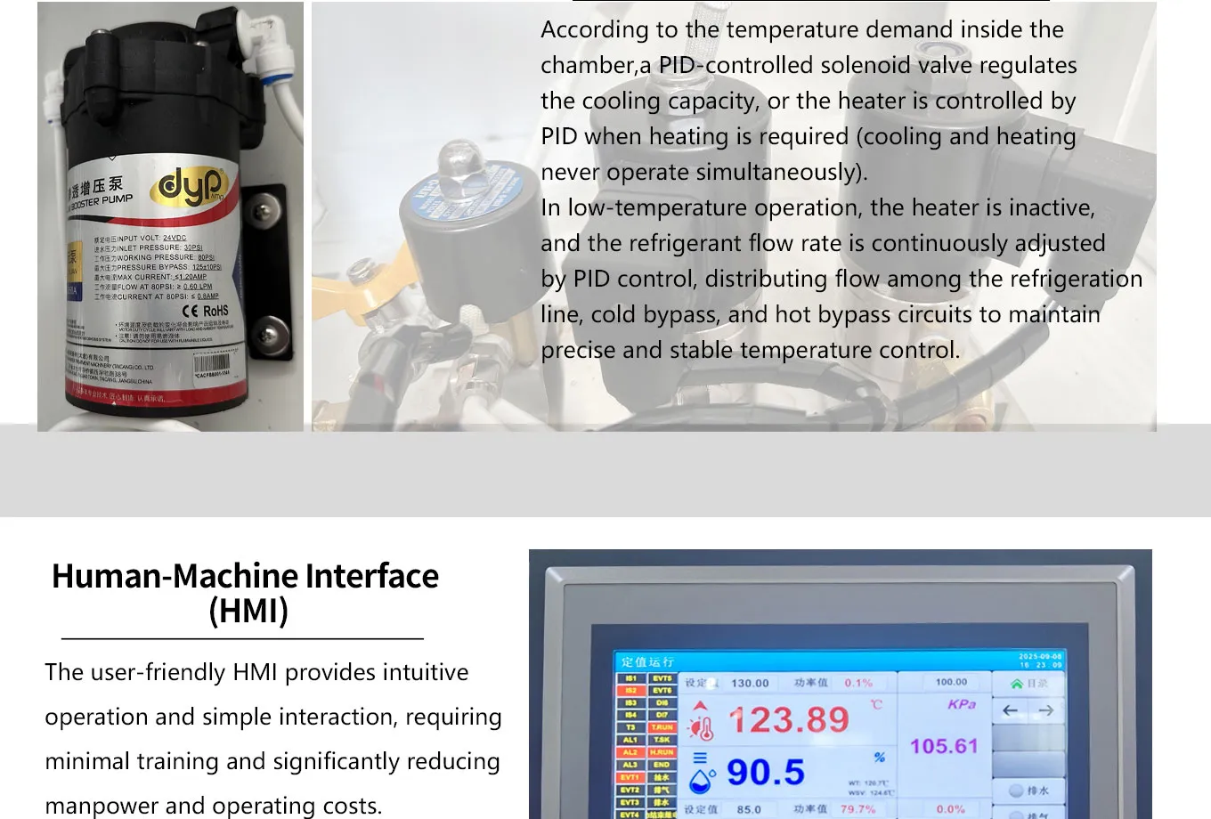 Intuitive Human-Machine Interface (HMI): A large touch-screen PLC controller offers simple programming of complex multi-segment test profiles, real-time graphing, and remote monitoring capabilities, minimizing operator error.